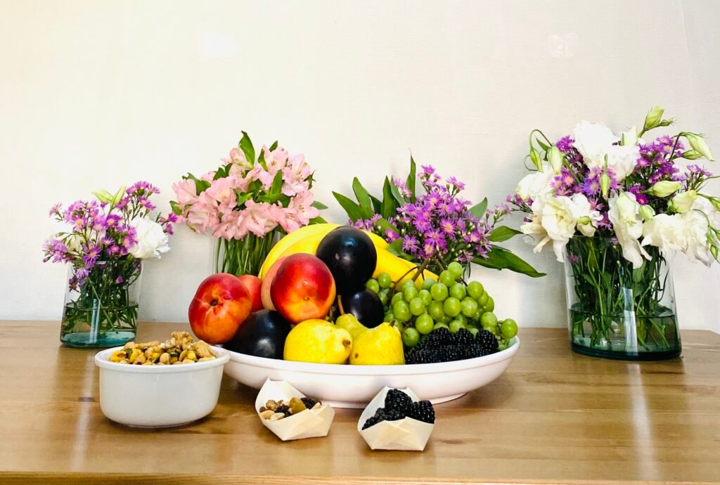 Integramos frutas frescas y flores naturales para revitalizar el ambiente laboral, creando un espacio más atractivo y agradable.